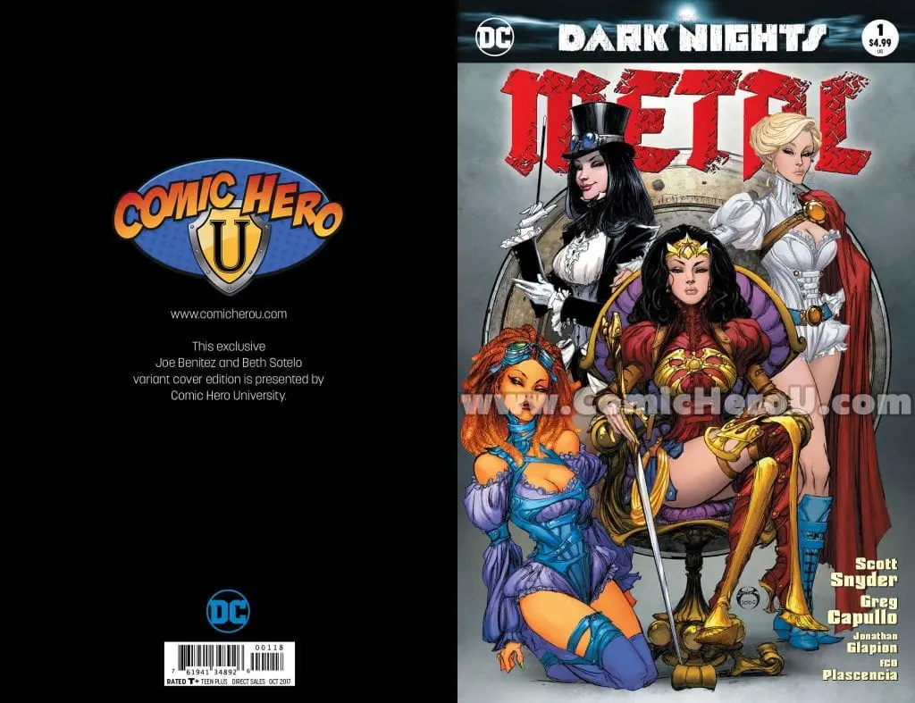 Dark Nights: Metal #1 has arrived, but there were printing problems with the Comic Hero University Exclusive Variant cover by Joe Benitez that have caused a delay in our shipping and will now cause a delay with the signing event.